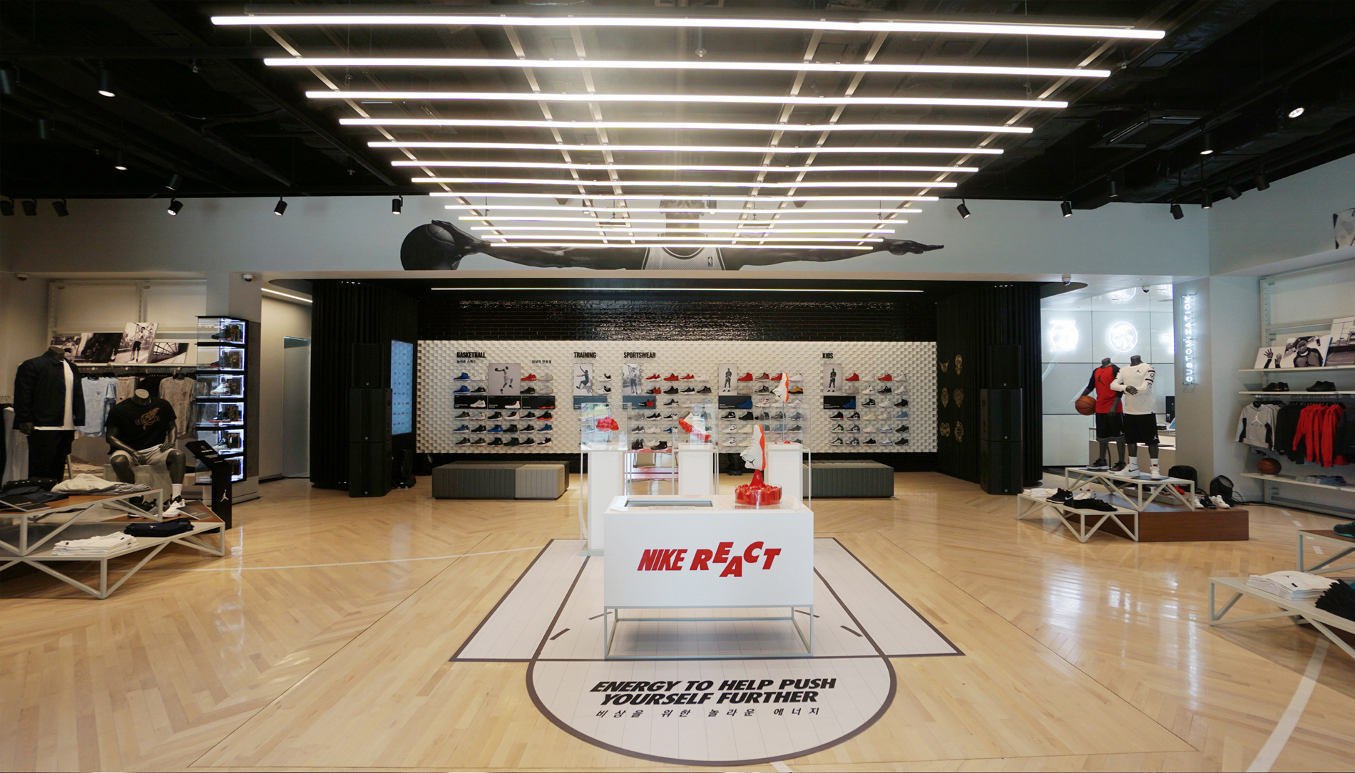 조던의 오랜 매니아는 물론, 농구와 스트리트 문화를 사랑하는 다양한 니즈들이 모여 조던 만의 특별함을 매장-공간을 통해 느끼고 체험할 수 있도록 설계되어 있습니다.