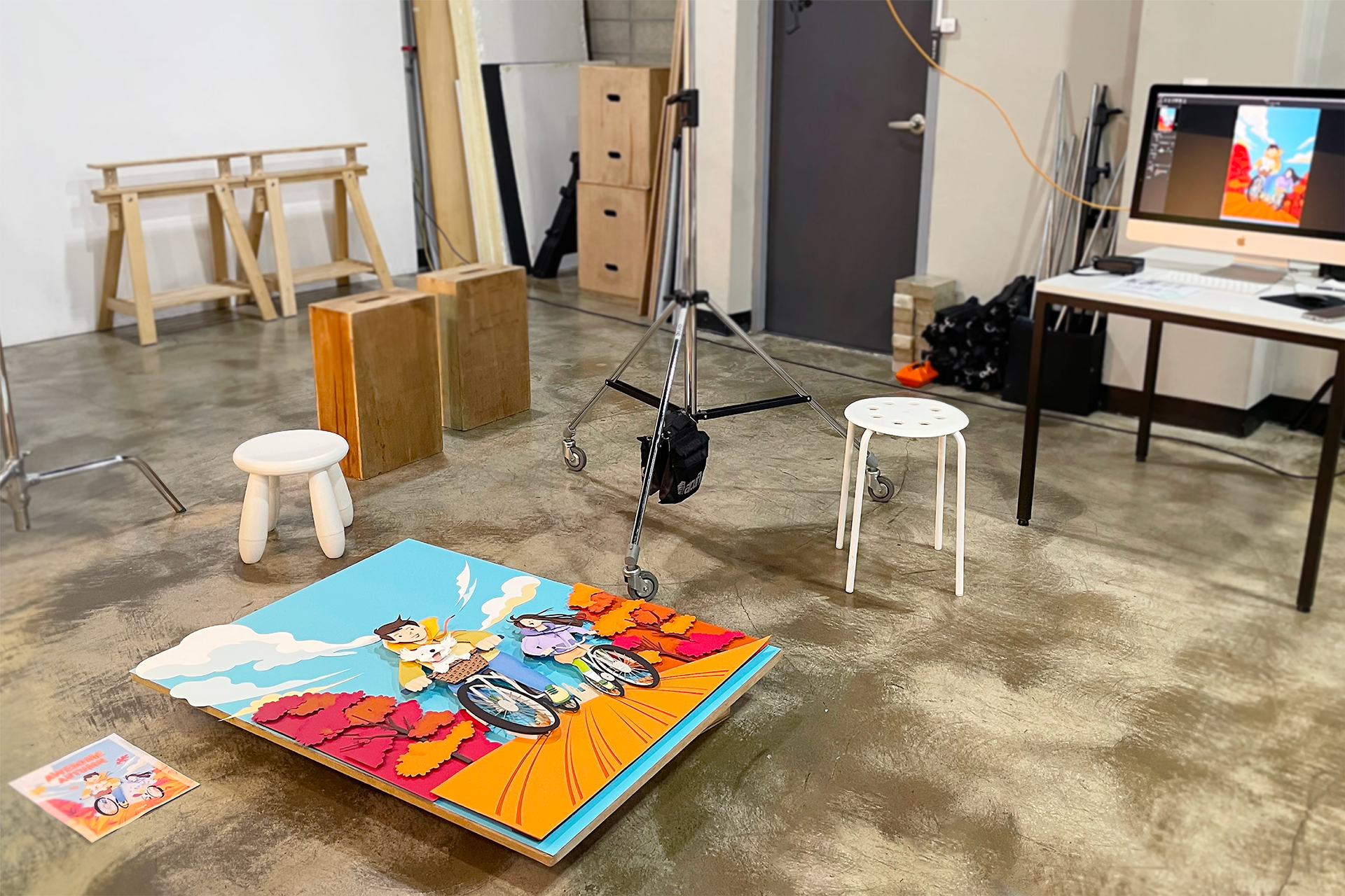 페이퍼 아트로 만나는 AWESOME AUTUMN! TOBE는 이지희 작가와 컬레버레이션을 진행하여, 여러 층으로 겹친 가을 풍경 사이를 역동적으로 오가는 인물의 경쾌한 모습을 선보였습니다.