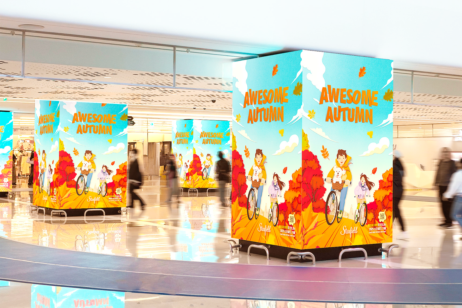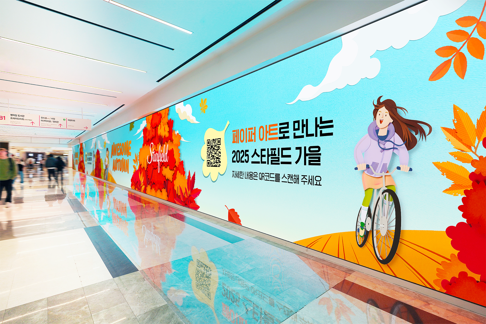 페이퍼 아티스트의 수공예 기법으로 구성된 이번 가을 비주얼은 풍부한 색감과 독특한 질감을 통해 이색적인 경험을 선사합니다. 종이로 만들어진 가을의 정취를 다양한 매체에 적용함으로써 전국 스타필드의 점포에서 색다른 감성을 전했습니다.